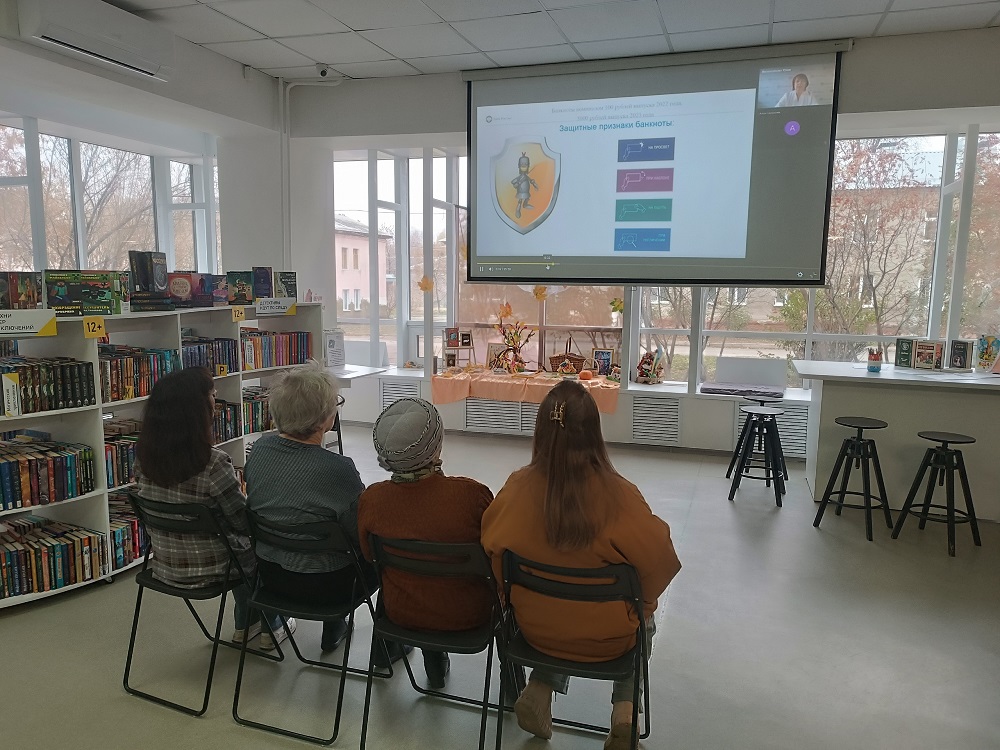 Сегодня в Городских библиотеках в рамках проекта «ФинЧАС» для старшего поколения прошёл видеолекторий «Модернизация банкнот Банка России и что делать с поврежденными банкнотами».