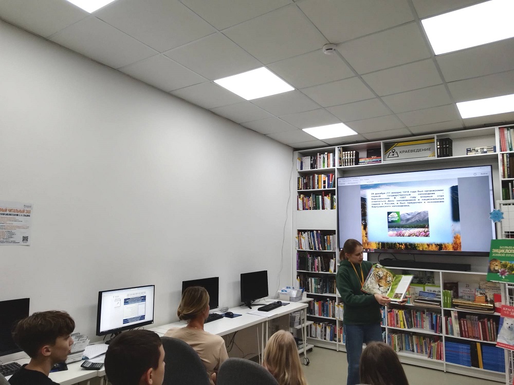 15 января 2026 года в библиотеке семейного чтения «Книжная радуга» (ул. Новогодняя, 2) юные читатели посетили урок-экскурсию «По заповедным местам России», где познакомились с заповедниками и национальными парками России, которых насчитывается около 110 и общая площадь которых составляет примерно 35 млн. га.