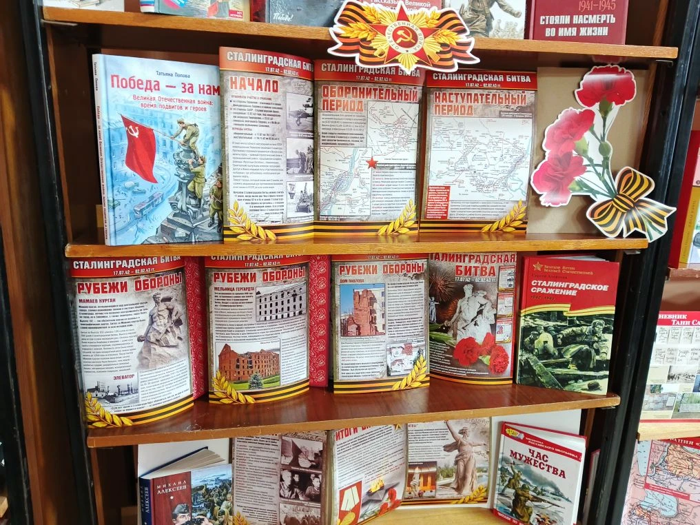 Представленные книги «Мой Сталинград» М.Алексеева, «Они сражались за Родину» Шолохова, а также сборники поэтической антологии авторов-фронтовиков помогут пробудить у читателя глубокий эмоциональный отклик на события давно минувших дней.