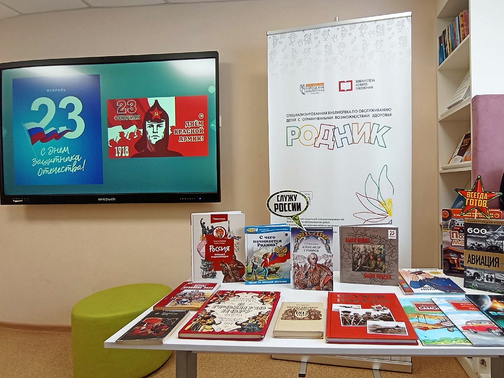 Книжная выставка, посвящённая Дню защитника Отечества, пользовалась огромным успехом. Ребята с интересом рассматривали старые фотографии, читали цитаты великих полководцев, листали страницы книг, рассказывающих о героических страницах отечественной истории.