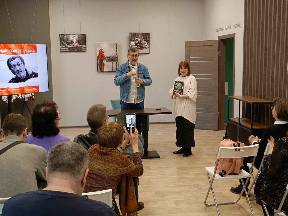 Ярким и трогательным моментом вечера стало преподнесение подарка: Игорь Мизгирев передал в фонд библиотеки тот самый экземпляр обсуждаемой книги.